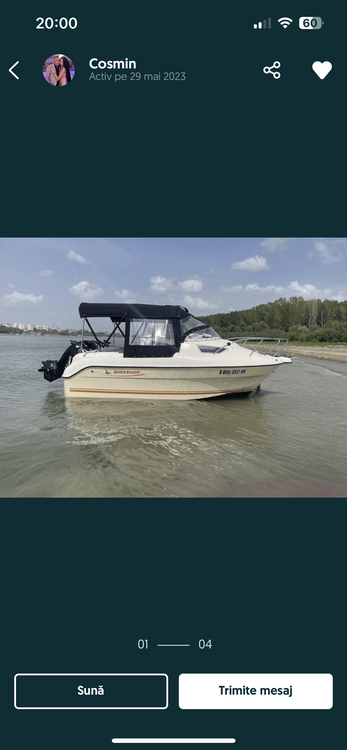 Vând barca QuickSilver 470+motor 50cp+peridoc satelite,revizia la motor făcută anul acesta 2024,barcă este în stare foarte bună,este la apă și se poate vedea oricând,0757854454