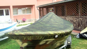 • Husa de stationare si transport cu chinga,acopera barca pana la nivelul de sub bordajul ambarcatiuni,chinga impreuna cu cei doi cricheti de strangere permite husei o strangere si o intindere perfecta pe chila ambarcatiuni.