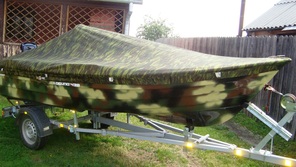 • Husa de stationare si transport cu chinga,acopera barca pana la nivelul de sub bordajul ambarcatiuni,chinga impreuna cu cei doi cricheti de strangere permite husei o strangere si o intindere perfecta pe chila ambarcatiuni.