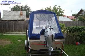 Husa de mars,se poate folosi si ca bimini-top,,parasolar daca se desfac geamurile laterale,care sunt prinse cu fermoare de partea superioara,si cu capse de chila barci.