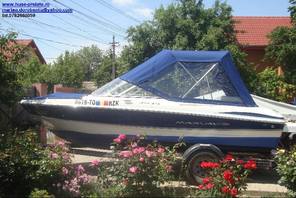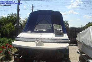 Husa de mars,se poate folosi si ca bimini-top,,parasolar daca se desfac geamurile laterale,care sunt prinse cu fermoare de partea superioara,si cu capse de chila barci.