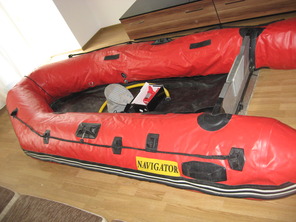 Baraca NAVIGATOR arata foarte bine; are suproti de lansete pentru barca 4 bucati ; podina din aluminiu suport de carat barca manual greutati de ancorat barca; chitul de lipiti barca 2 vasle