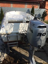 Barca se afla intr-o stare foarte buna cu vopsea originala, fund dublu , plus biminitop nou , colac de salvare , nu este inmatriculata nici barca ,nici peridocul , detin facturi pentru ambele, import Italia. Mai are montat suport inox motor pt cizma medie care se poate demonta pt cizma scurta. MOTORUL SA VANDUT