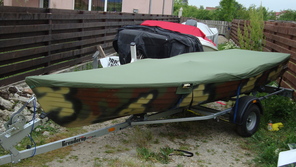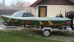 Husa de stationare si transport cu chinga,acopera barca pana la nivelul de sub bordajul ambarcatiuni,chinga impreuna cu cei doi cricheti de strangere permite husei o strangere si o intindere perfecta pe chila ambarcatiuni.
