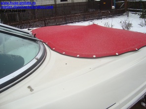 Husa de stationare si transport cu capse si butoni cu blocaj,se fixseaza pe barca cu ajutorul capselor ,butoni se pun in locurile unde exista riscul de desfacere a capselor.Pe marginea husei se face un tiv dublat cu chinga,pt.a evita smulgerea capselor din husa.