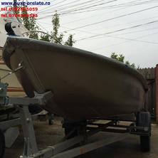 Husa de stationare si transport cu chinga,acopera barca pana la nivelul de sub bordajul ambarcatiuni,chinga impreuna cu cei doi cricheti de strangere permite husei o strangere si o intindere perfecta pe chila ambarcatiuni.