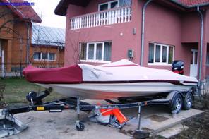 Husa de stationare si transport cu chinga,acopera barca pana la nivelul de sub bordajul ambarcatiuni,chinga impreuna cu cei doi cricheti de strangere permite husei o strangere si o intindere perfecta pe chila ambarcatiuni.