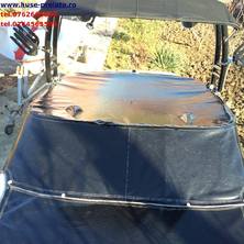 Husa de stationare si transport cu capse si butoni cu blocaj,se fixseaza pe barca cu ajutorul capselor ,butoni se pun in locurile unde exista riscul de desfacere a capselor.Pe marginea husei se face un tiv dublat cu chinga,pt.a evita smulgerea capselor din husa.