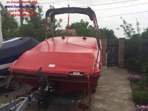 Husa de stationare si transport cu capse si butoni cu blocaj,se fixseaza pe barca cu ajutorul capselor ,butoni se pun in locurile unde exista riscul de desfacere a capselor.Pe marginea husei se face un tiv dublat cu chinga,pt.a evita smulgerea capselor din husa.