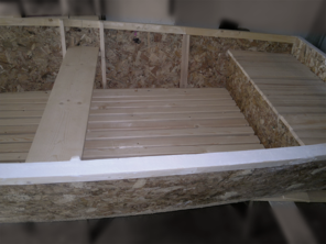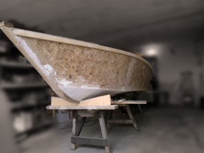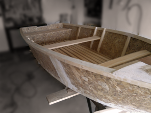 >structura de lemn imbracata cu fibra de sticla [interior + exterior];