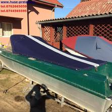 Husa de stationare si transport cu capse si butoni cu blocaj,se fixseaza pe barca cu ajutorul capselor ,butoni se pun in locurile unde exista riscul de desfacere a capselor.Pe marginea husei se face un tiv dublat cu chinga,pt.a evita smulgerea capselor din husa.