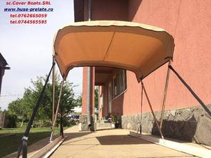 Constructia acestui ansamblu este din teava de inox sau aluminiu cu chituri de asamblare din inox,tesutul din partea de sus poate fi