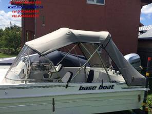 Husa de mars,se poate folosi si ca bimini-top,,parasolar daca se desfac geamurile laterale,care sunt prinse cu fermoare de partea superioara,si cu capse de chila barci.