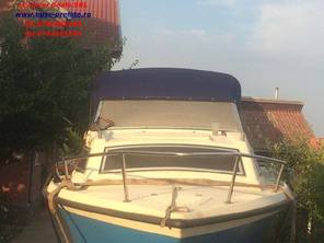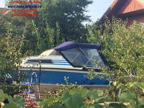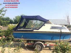 Husa de mars,se poate folosi si ca bimini-top,,parasolar daca se desfac geamurile laterale,care sunt prinse cu fermoare de partea superioara,si cu capse de chila barci.