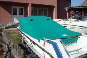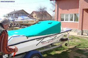 Husa de stationare si transport cu capse si butoni cu blocaj,se fixseaza pe barca cu ajutorul capselor ,butoni se pun in locurile unde exista riscul de desfacere a capselor.Pe marginea husei se face un tiv dublat cu chinga,pt.a evita smulgerea capselor din husa.