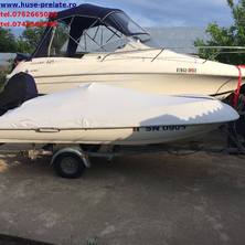 Husa de stationare si transport cu chinga,acopera barca pana la nivelul de sub bordajul ambarcatiuni,chinga impreuna cu cei doi cricheti de strangere permite husei o strangere si o intindere perfecta pe chila ambarcatiuni.