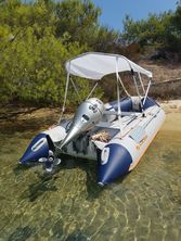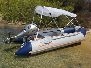 Barca Kolibri 3.6 metri, 4 compartimente de aer, podea rigida demontabila, stare impecabila, fără zgârieturi sau petice, 2 băncuțe, vâsle, parasolar cu filtru UV, ancoră 5 KG, rezervor 20l cu cupla rapida de carburant, antifurt, motor Honda 15 HP 4 timpi, consum mediu 2l/ora, 4 persoane la viteza 33 km/h consum 3l/h, pornire la prima sfoara, recent servisat complet, hidrofoil pentru glisare rapidă, roti ajutătoare rabatabile pentru lansarea la apa, elice de rezerva, vâsle, cărucior mare pentru transport și depozitare motor, compresor special pentru umflat și dezumflat, etc. Folosita în total 3 săptămâni în Grecia fără incidente. Se poate transporta împachetata în gentile speciale, într-o mașină de dimensiuni normale și apoi asambla și lansa la apa când ajungi la destinație. Extrem de stabila inclusiv pe mare, însă nu recomand sa va aventurați în larg. |