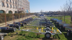 Remorci auto, peridocuri pentru transport ambarcatiuni si skijet-uri. Modulare, adaptabile oricarei ambarcatiuni de 4, 5 sau 5,5 metri lungime. Sunt dotate cu sine sau role speciale pentru a nu afecta structura ambarcatiunii, in timpul transportului. Modele perfectionate si omologate RAR, ce s-au vandut in mii de exemplare, in toata tara si peste hotare.