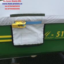 Husa de stationare si transport cu chinga,acopera barca pana la nivelul de sub bordajul ambarcatiuni,chinga impreuna cu cei doi cricheti de strangere permite husei o strangere si o intindere perfecta pe chila ambarcatiuni.