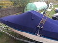 Husa de stationare si transport cu chinga,acopera barca pana la nivelul de sub bordajul ambarcatiuni,chinga impreuna cu cei doi cricheti de strangere permite husei o strangere si o intindere perfecta pe chila ambarcatiuni.