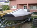 Husa de stationare si transport cu chinga,acopera barca pana la nivelul de sub bordajul ambarcatiuni,chinga impreuna cu cei doi cricheti de strangere permite husei o strangere si o intindere perfecta pe chila ambarcatiuni.