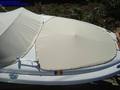 Husa de stationare si transport cu capse si butoni cu blocaj,se fixseaza pe barca cu ajutorul capselor ,butoni se pun in locurile unde exista riscul de desfacere a capselor.Pe marginea husei se face un tiv dublat cu chinga,pt.a evita smulgerea capselor din husa.