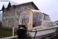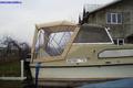 Husa de mars,se poate folosi si ca bimini-top,,parasolar daca se desfac geamurile laterale,care sunt prinse cu fermoare de partea superioara,si cu capse de chila barci.