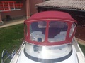 Husa de mars,se poate folosi si ca bimini-top,,parasolar daca se desfac geamurile laterale,care sunt prinse cu fermoare de partea superioara,si cu capse de chila barci.
